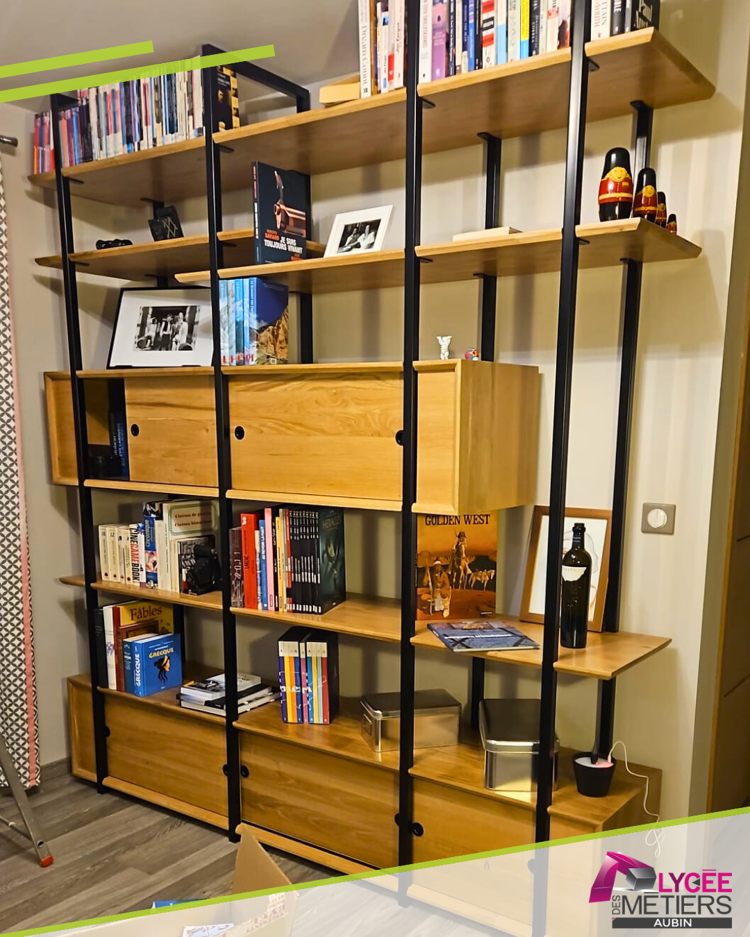 Sur deux années consécutives, les élèves de 1ère BMA (menuiserie) ont conçu, fabriqué et installé une bibliothèque en chêne pour un particulier. Accompagnés par leur professeur de menuiserie, Nicolas Paillard, et par Morgan Goavec-Mevel (professeur de construction ), ils ont mené ce projet de la conception à la pose finale.